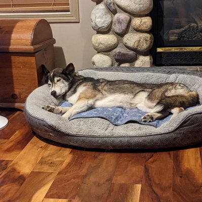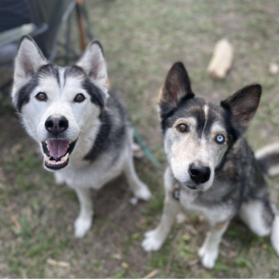 We brought Amelia camping with us and told the kids, “…just wait till you meet her.” When they did they all agreed that she was the one. She has a partner in crime, our 6 ½-year-old Siberian Rocky. She tolerates him, lol. She’s very needy and often sits right beside Sam waiting for pets. She spent a lifetime training pups to be lead dogs like her so her patience isn’t great with young dogs anymore. She quickly puts them into their place.