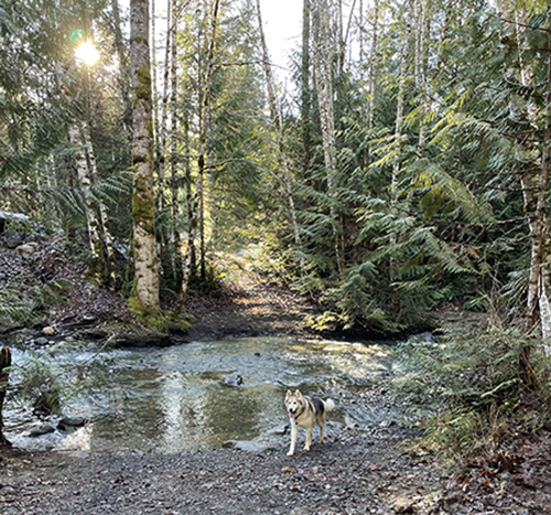 • learning to be a mountain bike trail dog