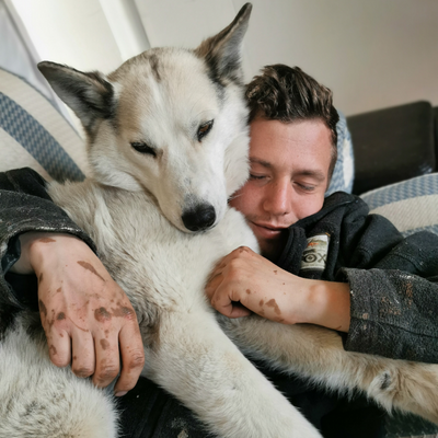 Currently, it’s just myself, my partner Kate and our beloved hoosky Kimbers.