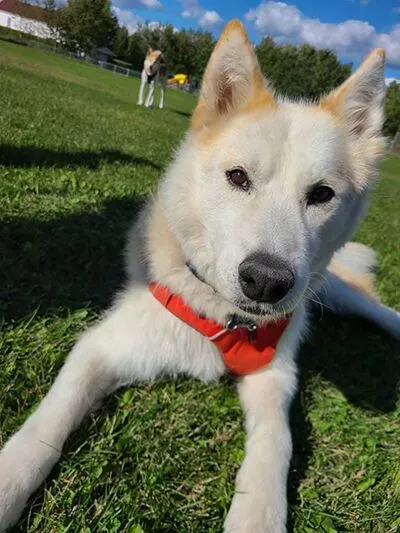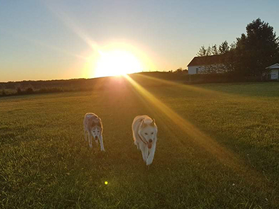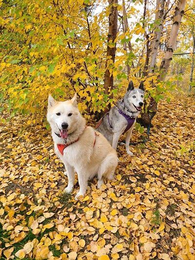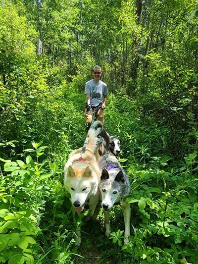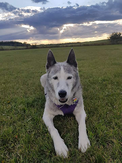 My girls and I went every winter to dog sled with Snowy Owl, and one winter Carlin spoke to us about how you guys adopt your husky heroes when they retire. We did the summer kennel visit shortly after we rescued Rockie and long story short he needed a strong lead dog to help him. Carlin worked with us to bring Savannah home and the truth is she saved our Rockie boy. Then what’s one more husky haha! My girls and I decided to bring home another husky hero since we moved out to our acreage and had the space and had the time to continue running in the trails. We fell in love with Mikey and although he took some time getting used to living with cats lol and being inside he is our teddy bear.