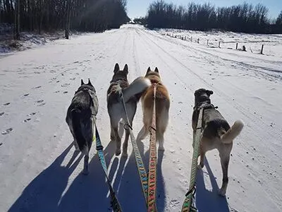 I love the unconditional love they have for their retired life. Savannah is in charge in our house a true lead dog and Mikey is my shadow, when we are in the trails he has a job to do and he never let’s me down. Both have shown our other two huskies (Rockie and Yukon) how to run the trails. I love that we can give them a mostly relaxing retirement. When the day comes that we are ready to adopt again we will be bringing home another retired sled dog – our home is not complete without at least 2 retired snowy owl heroes!