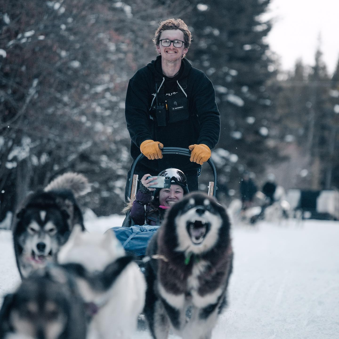 Instructor-driven sleds can be an excellent choice for visitors who may have a lot of questions and would like to learn even more about dog sledding! In addition, we understand not everyone wishes to operate a self-driven sled and would prefer to have an experienced instructor behind them.