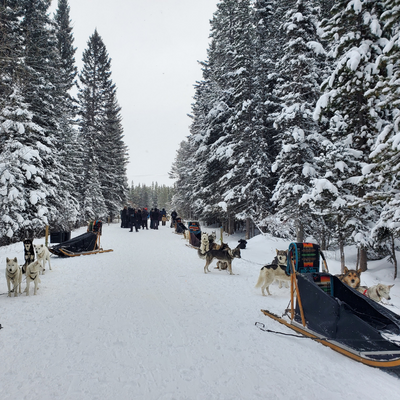 The best way to complete your Canadian Rockies vacation in style is with a traditional dog sledding tour. Here at Snowy Owl Dog Sled Tours we offer 4 different winter dog sled tours, our popular 2-hour, a half-day tour, a full-day tour, and our bucket list overnight experience. Almost all of our guests who book the 2-hour tour wish they had booked the 4-hour tour instead. Once you’re up in the winter wonderland with our husky heroes you won’t want to come back. It’s like being in a real life snowglobe.